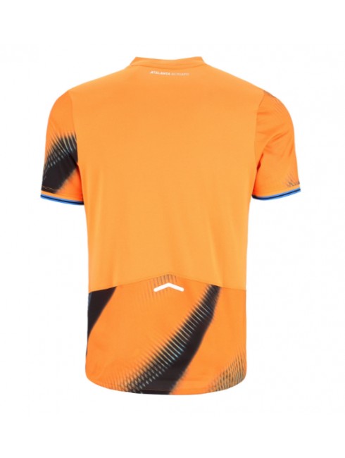 Tretji dres Atalanta za sezono 2025/26 je pretežno živo oranžen in ima presenetljiv abstrakten valoviti vzorec v črni in modri barvi. Ta edinstven vzorec je navdihnjen z grbom Atalante in spominja na dolge lase boginje Atalante.