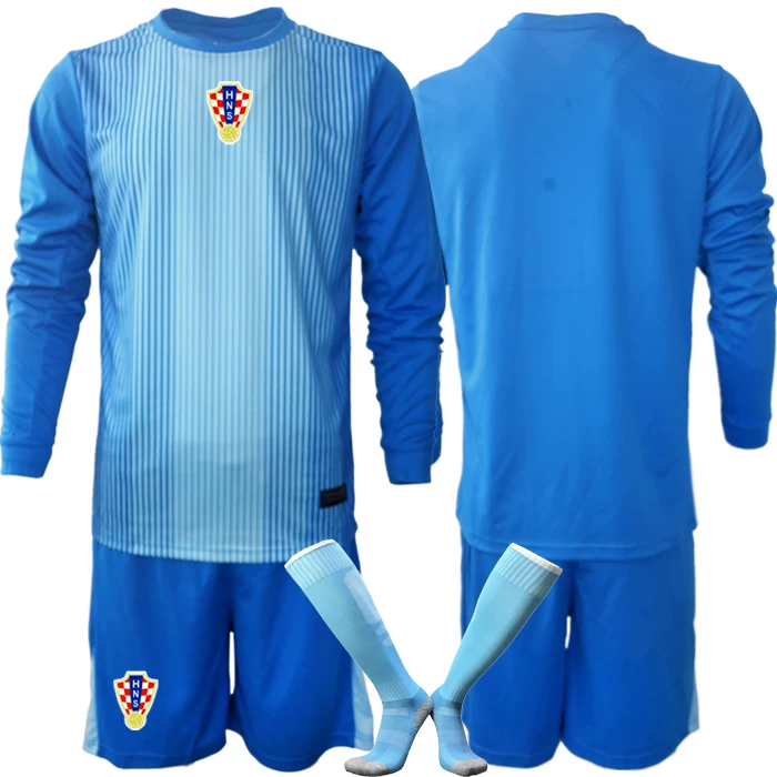 Najcenejši nogometni dresi kompleti Hrvaška Vratar 2025-26 modra z lastnim tiskom
