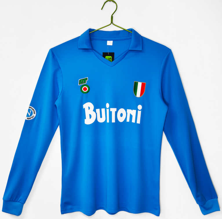 Poceni Moški retro nogometni dresi SSC Napoli Domači 1987-88 modra Dolgi Rokav