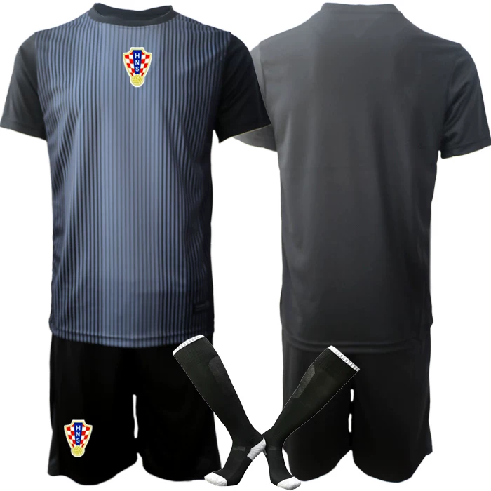 Poceni nogometni dresi kompleti Hrvaška Vratar 2025-26 črna z lastnim tiskom