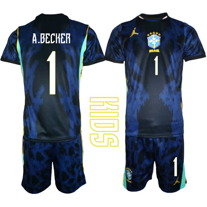 Poceni Otroški Nogometni dresi kompleti Brazilija Alisson Becker #1 Gostujoči SP 2026