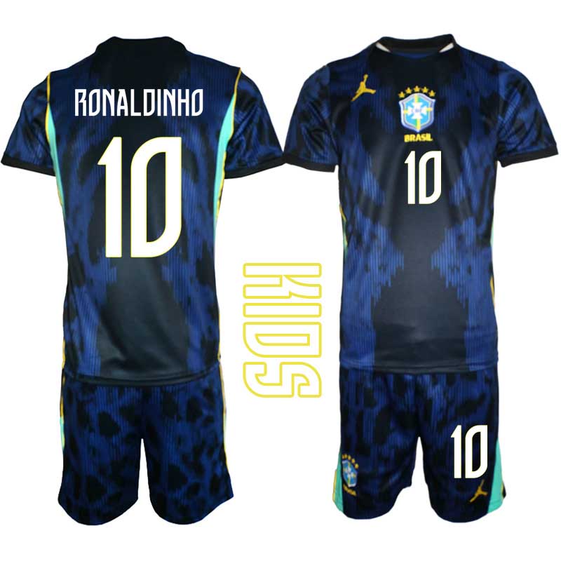 Poceni Otroški Nogometni dresi kompleti Brazilija Ronaldinho Gostujoči SP 2026 + Kratek Rokav