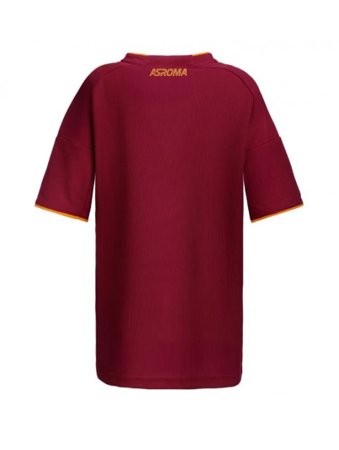 Domači dres AS Roma 25-26 ima osnovno barvo “Legacy Burgundy” ter oranžne logotipe in stranske črte. Ta barvna shema spominja na dres iz sezone 1992-94, ki je bil prav tako izdelan.